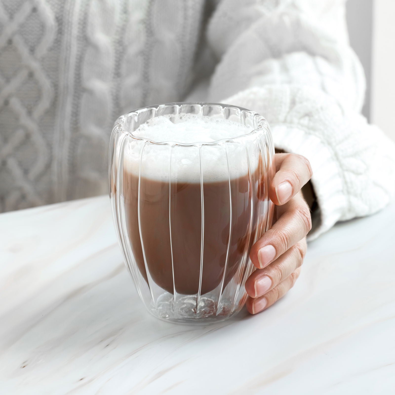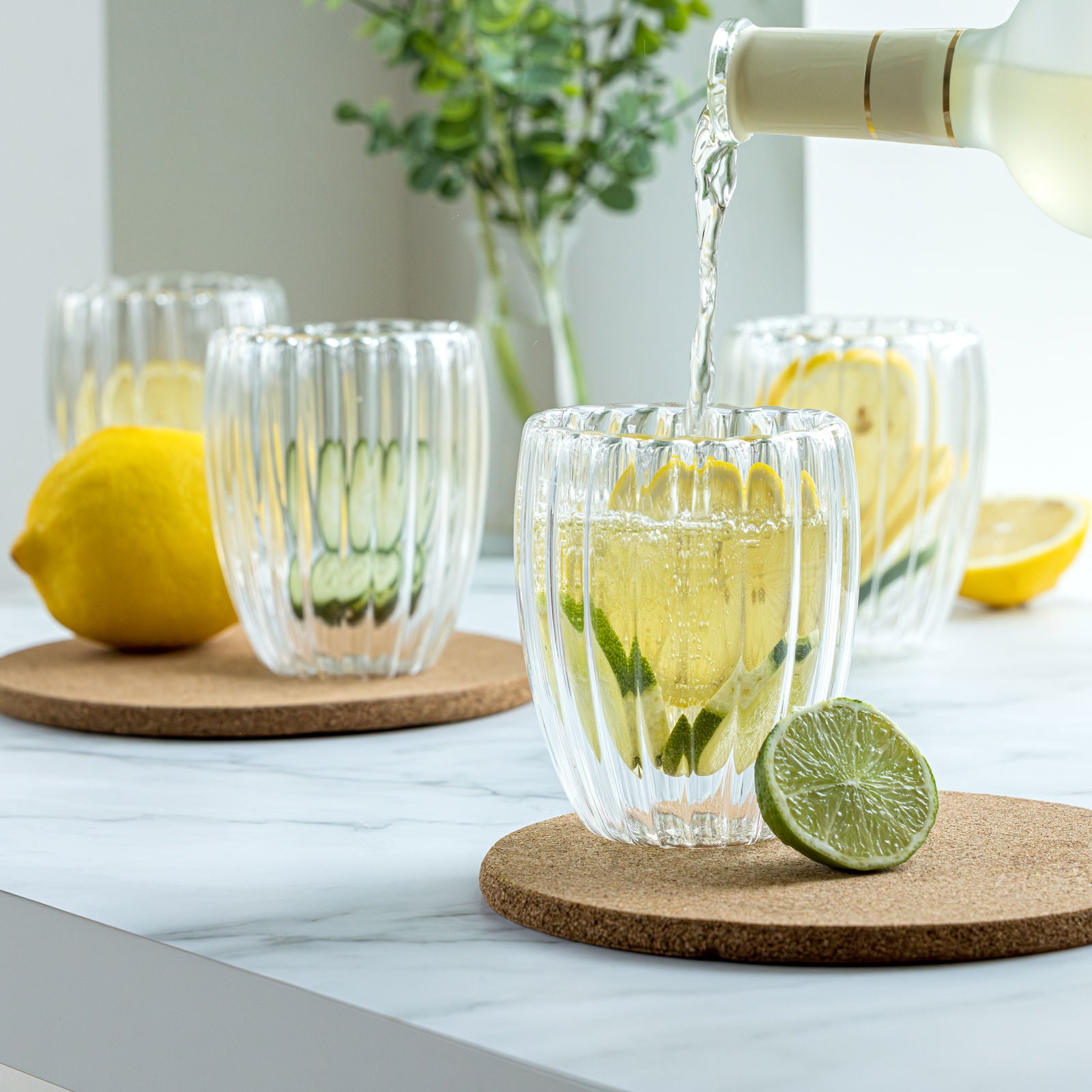 Tilføj et strejf af luksus til borddækningen med disse elegante rillede glas fra OlsenHome. Det unikke, dobbeltvæggede design kombinerer æstetik og funktionalitet, så dine drikkevarer holder den rette temperatur længere. Perfekte til både hverdag og særlige anledninger.